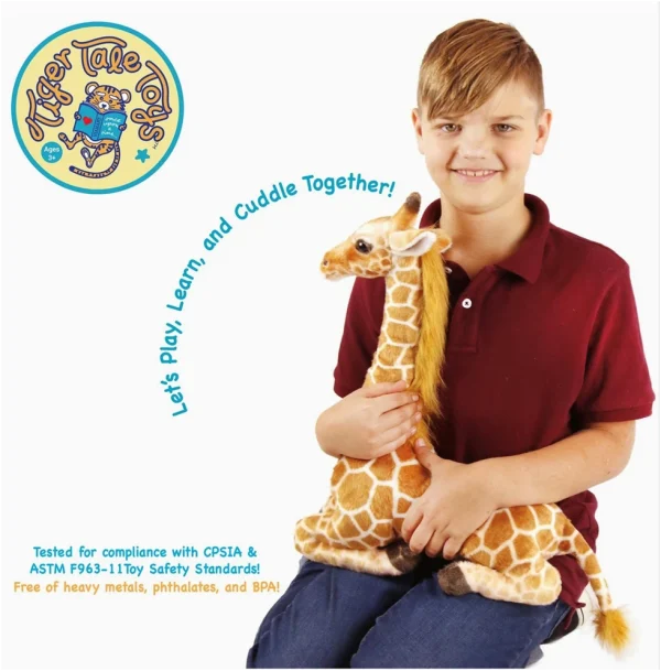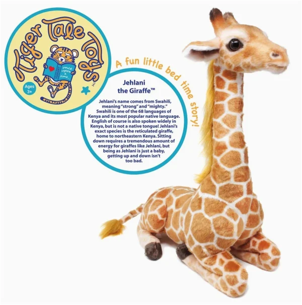 Jehlani’s name comes from Swahili, meaning “strong” and “mighty.” Swahili is one of the 68 languages of Kenya and its most popular native language. English of course is also spoken widely in Kenya, but is not a native tongue! Jehlani’s exact species is the reticulated giraffe, home to northeastern Kenya. Sitting down requires a tremendous amount of energy for giraffes like Jehlani, but being as Jehlani is just a baby, getting up and down isn’t too bad. – Size: 12 x 5 x 18 in inches | Weighs approximately 0.7 in pounds – Soft plush fabric | Super cute | Comes comes with its own story – No phthalates, lead, BPA, or heavy metals | Tested in accredited labs for compliance with CPSIA and ASTM F963-11 safety standards.