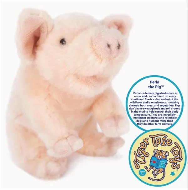 Perla is a female pig also known as a sow and can be found on every continent. She is a descendant of the wild boar and is omnivorous, meaning she eats both meat and vegetation. Pigs don’t have sweat glands and roll around in the mud to help control their body temperature. They are incredibly intelligent creatures and resemble dogs and humans more than they do other farm animals. – Size: 11 x 4 x 5 in inches | Weighs approximately 0.368 in pounds – Soft plush fabric | Super cute | Comes with its own story – No phthalates, lead, BPA, or heavy metals | Tested in accredited labs for compliance with CPSIA and ASTM F963-11 safety standards.