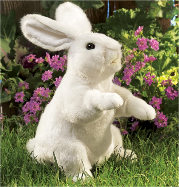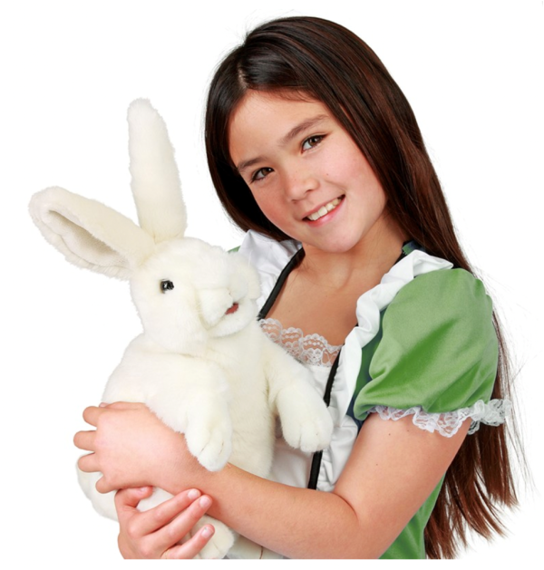 The classic and timeless design of this Standing White Rabbit puppet make him a winner, no matter what race is run. Large as life and twice as cuddly, once you pick him up you won’t want to put him down. Standing White Rabbit puppet features movable front paws and mouth, stands 17, is recommended for ages 3 and up.