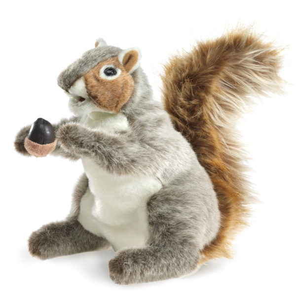 In the tradition of Folkmanis’ award-winning wildlife puppets, comes this gracefully detailed Gray Squirrel Puppet. Featuring rich plush, a movable mouth and thread whiskers, this inquisitive squirrel comes with his own acorn so he won’t need to raid the nut bowl!